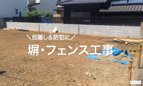 境界塀とフェンスの工事に着手しました。塀・フェンスは目線を隠すための高さ設定が需要。外構工事も終盤です。